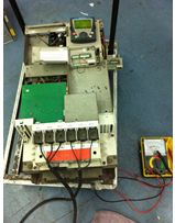 第三,將變頻器全部拆下,靜態(tài)測(cè)試整流模塊,逆變模塊。同時(shí)進(jìn)行觸發(fā)整流和逆變模塊,測(cè)試結(jié)果良好。電解電容拆下,檢查電容外觀,沒有破損的痕跡,也沒有電解液體外流現(xiàn)象。然后進(jìn)行充放電測(cè)試,電解電容性能良好。