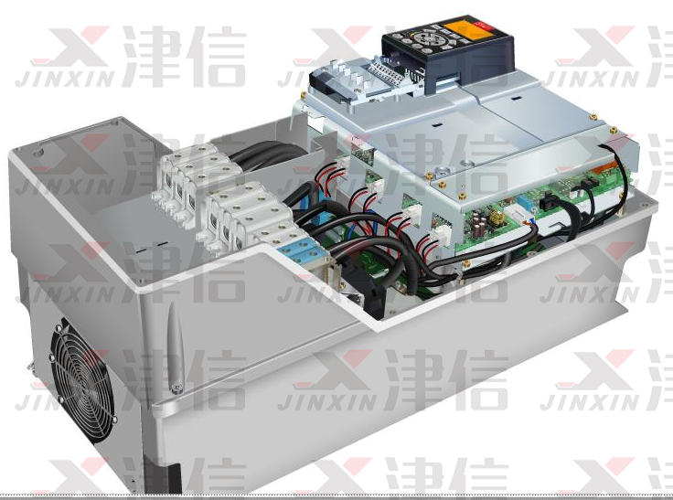 丹佛斯FC0302P37K5T5E55變頻器功率為37KW,封裝等級為I55,該機(jī)型拆裝比較簡單。根據(jù)客戶的反映情況,檢查該變頻器。先拆上蓋板,可以看到變頻器的全部概括(如下圖)。依次拆下變頻器的圖型面板、控制卡、后再拆固定板,可以把電源卡取下。測試電源卡整流模塊,逆變模塊,電解電容,全部正常。但是送電就顯示A33故障。