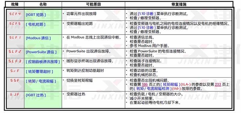 4、SCF4,SCF5,SLF1、SLF2、SLF3、SrF、SSF和tJF故障