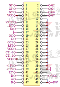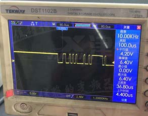 給變頻器送電后,變頻器面板顯示ERR37,根據(jù)故障解釋說明,檢查CPU小板反饋至控制卡的信號波形異常,有帶毛刺的尖雜波。測量點為下圖45,47號。