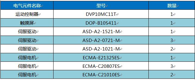 1.主要電氣控制部件清單: