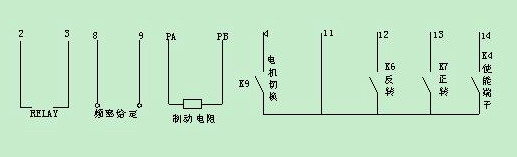 K6和K7分別控制電機正反轉(zhuǎn),K4為使能端;頻率給定方式是PLC輸出0--+10V的電壓信號對應0—50HZ;并且KEB也是利用變頻器自身的+15V源極開機方式.以上條件丹佛斯VLT2800全部可以滿足并且能夠達到客戶所有要求的功能.