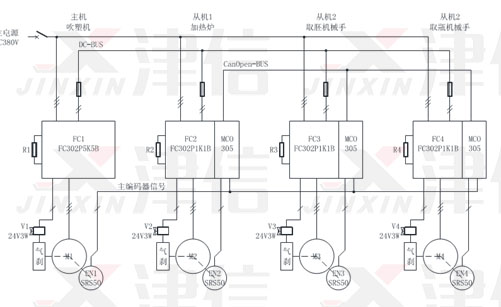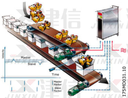 丹佛斯FC300高性能驅動器加上新一代MCO305高速運動專用控制器,可實現(xiàn)定位控制功能。電機可以選用異步或同步伺服電機。支持各種各樣的電機反饋裝置,從增量編碼器、絕對位置編碼器一直到旋轉變壓器。針對丹佛斯MCO305同步控制功能,上海津信變頻器有限公司為客戶在食品飲料行業(yè)吹瓶機上進行了技術應用。