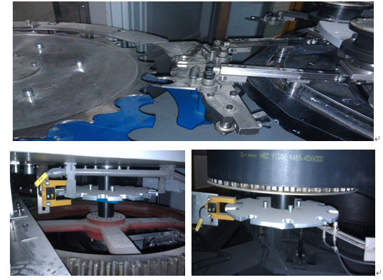 目前吹瓶機各同步環(huán)節(jié)采用同一電機驅動、機械同步解決方案,該方案基本上在設備使用兩年以上后,機械會出現(xiàn)不同程度磨損和損壞,導致同步精度降低,出現(xiàn)故障時,維修周期長、維護量較大。類似這種機械式的軸、皮帶或鏈條同步方案逐漸被步進系統(tǒng)、伺服系統(tǒng)、變頻器系統(tǒng)的電氣同步方案取代。