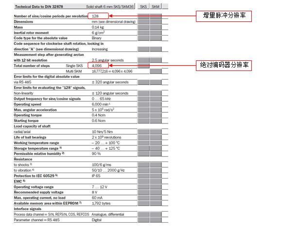 查閱編碼器說明書,得到編碼器參數(shù)表: